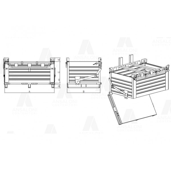 Conteniotore accatastabile in lamiera con fondo UNICO apribile con portata Kg. 2000